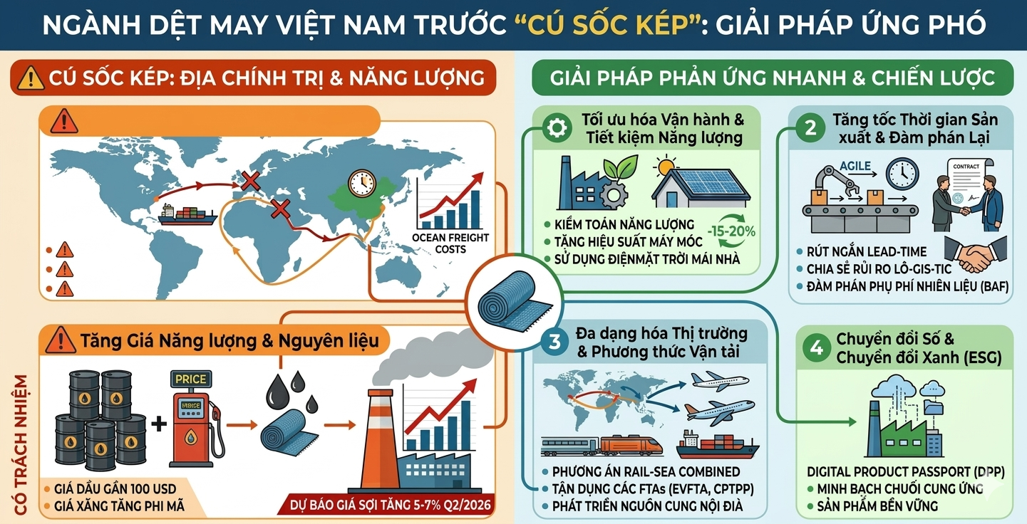 Ngành Dệt may trước “cú sốc kép” địa chính trị: Giải pháp ứng phó biến động giá năng lượng và Logistics