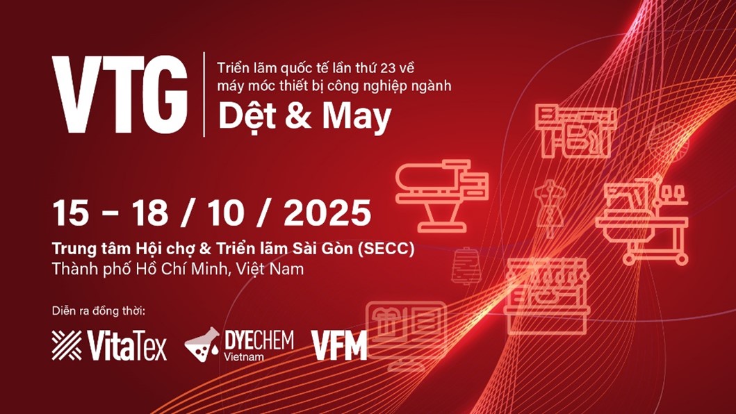 Tiếp nối thành công vang dội của VTG 2024, chào đón 15.468 lượt khách tham quan và 414 đơn vị tham gia triển lãm từ 12 quốc gia. Triển lãm quốc tế ngành dệt may Việt Nam lần thứ 23 (VTG 2025) sẽ được diễn ra tại Trung tâm triển lãm và hội nghị Sài Gòn (SECC) từ ngày 15 đến 18 tháng 10 năm 2025.