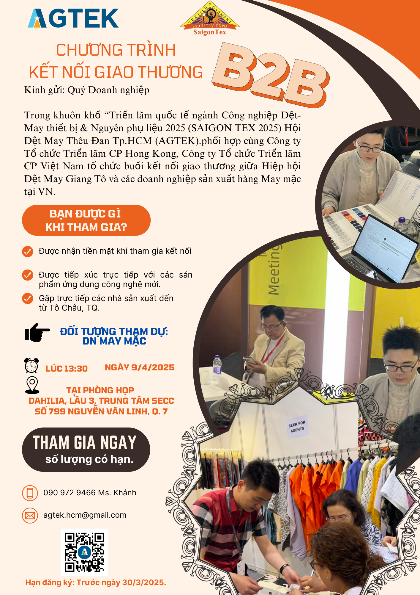 MỜI THAM DỰ KẾT NỐI GIAO THƯƠNG B2B GIỮA DN DỆT MAY VN VÀ DN DỆT MAY TRUNG QUỐC